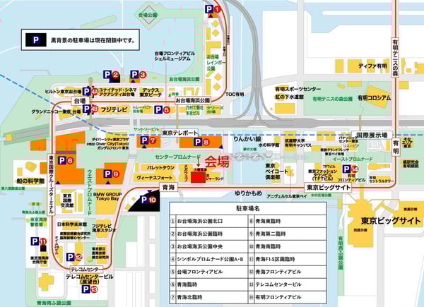 周囲に複数の駐車場があります。各駐車場の詳細はこちらをご覧ください。臨海副都心パーキングマップ▶