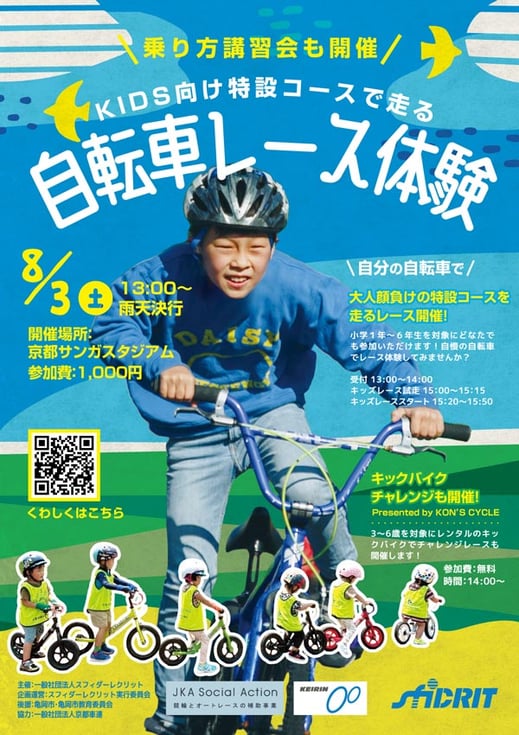 去年に引き続き今年も京都CRITにブース出店してくださる地元京都のピスト乗りならだれでも知っている名店「コンズサイクル蛸薬師店」様が今大会もちびっこが無料で楽しめるイベント「キックバイクチャレンジ」を会場内で開催してくださいます。
