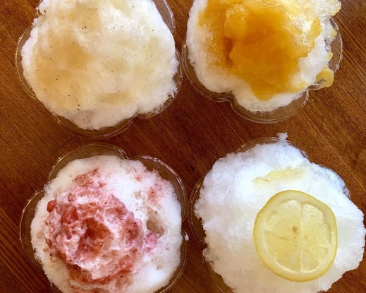 レースで汗をかいた後は、美味しいかき氷のひんやりご褒美があります!協賛はいつも美味しいフードを用意してくださるエスキーナさん。